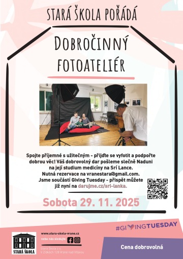 Přijďte se vyfotit a podpořte dobrou věc. O fotky nejen do rodiného alba se postarají fotografové Milan Kollinger a David Štěpán. Nutná rezervace místa na vranestara@gmail.com.