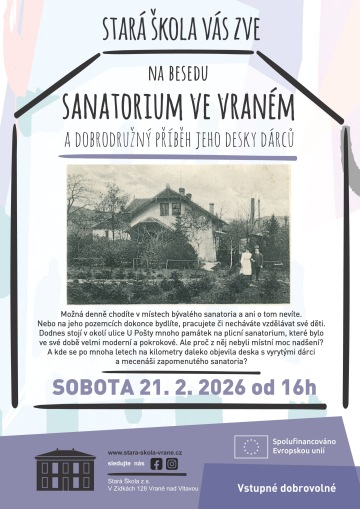 Přijďte se dozvědět více o dobrodužném příběhu vranského plicního sanatorie, které stávalo na místě dnešní ZUŠ Vrané nad Vltavou. Vstupné je zdarma.