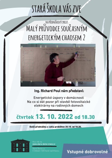 - 13.10. 2022 Ing. Richard Poul: Energetické úspory v domácnostech. Prezentace ke stažení zde. Více informací o přednášejícím najdete zde.