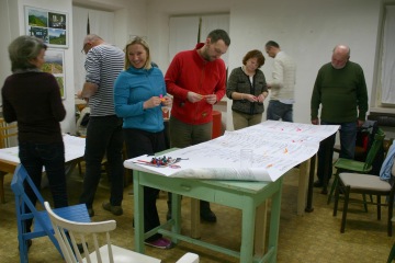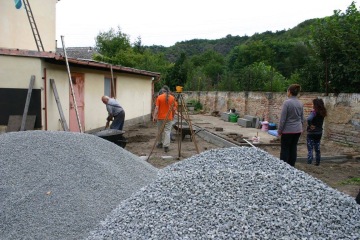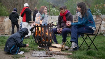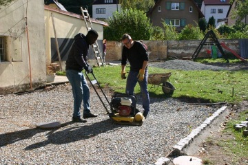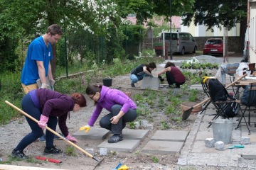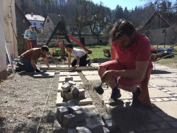- 2017 realizace formou brigád místních dobrovolníků, firemních dobrovolníků (T-Mobile, Concur, ČEZ) a za výpomoci místních řemeslníků: vyčištění prostoru, budování zpevněných povrchů chodníků, terasy venkovní kavárny, pěstebních záhonů, kompostéru, pétanque hřiště, výsadby keřů a ovocných stromů
